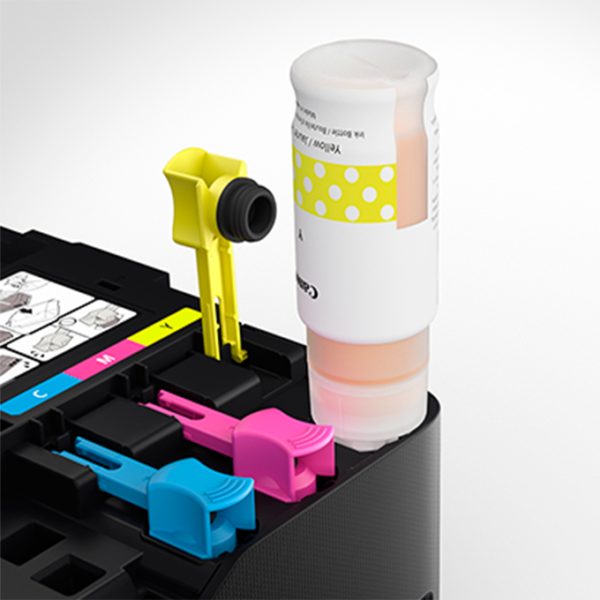 - Dùng mực: Canon GI 71BK (6.000 trang); GI 71C/ M/ Y (7.700 trang)